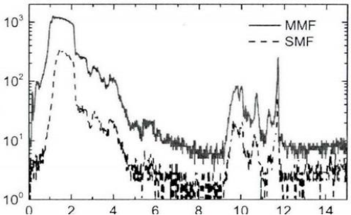 NFAD 分为单模光纤耦合和多模光纤耦合两种类型。在气溶胶激光雷达中,接收 望远镜的视场角一般要略大于发射望远镜的视场角,以保证能接收到所有的后向散射信号。对于单模光纤而言,只能使用较短焦距的透镜和小直径的望远镜以满足视场角 的需求,而多模光纤具有更大的数值孔径,在使用较大焦距和较大面积的望远镜时同 样能满足视场角需求,因此具有更大的收集效率。此外,大气湍流对单模光纤耦合效 率的影响较为明显,而多模光纤的耦合效率则更加稳定。