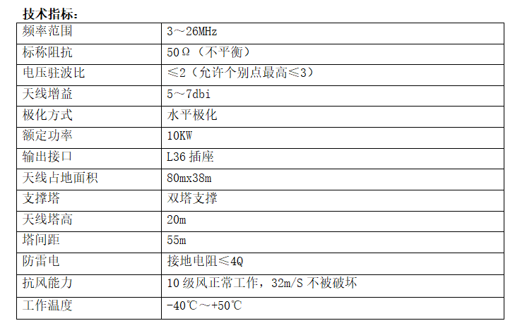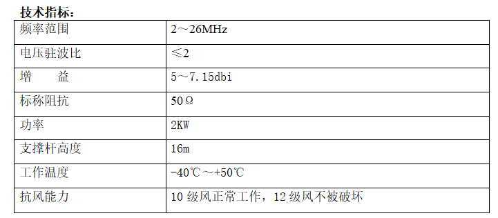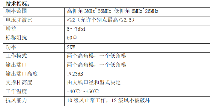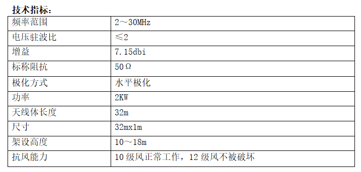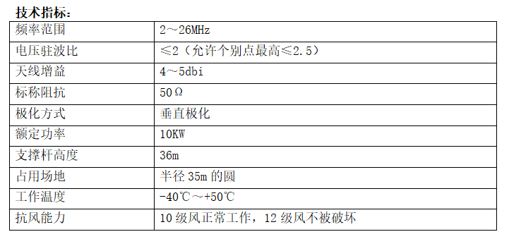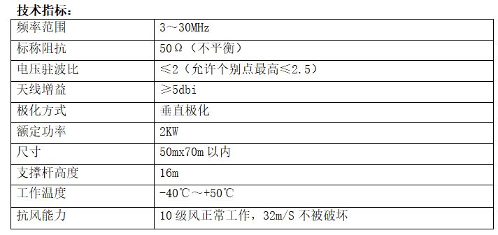 The antenna is capable of medium- to long-distance shortwave communication and is the preferred antenna for shortwave fixed communication stations.