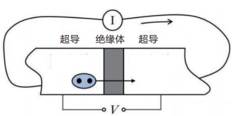 约瑟夫森提出了一种特殊的结构:超导层—薄绝缘层—超导层(下图)。(薄绝缘层–很薄的势垒层 — 厚度 ≤ Cooper电子对的相干长度),称为“约瑟夫森结”或称为超导隧道结。无阻流动的库珀对,以一定概率无损耗地跨过绝缘层流动到了对面的超导层,产生隧穿电流。约瑟夫森也因此构想,获得1973年的诺贝尔物理学奖。